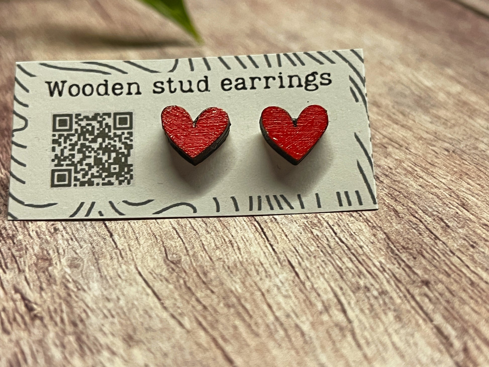 Mini Heart Stud Earrings – Pick Your Color – Tiny Wooden Heart Earrings – Cute Hand Painted Jewelry – Valentine Gift Idea