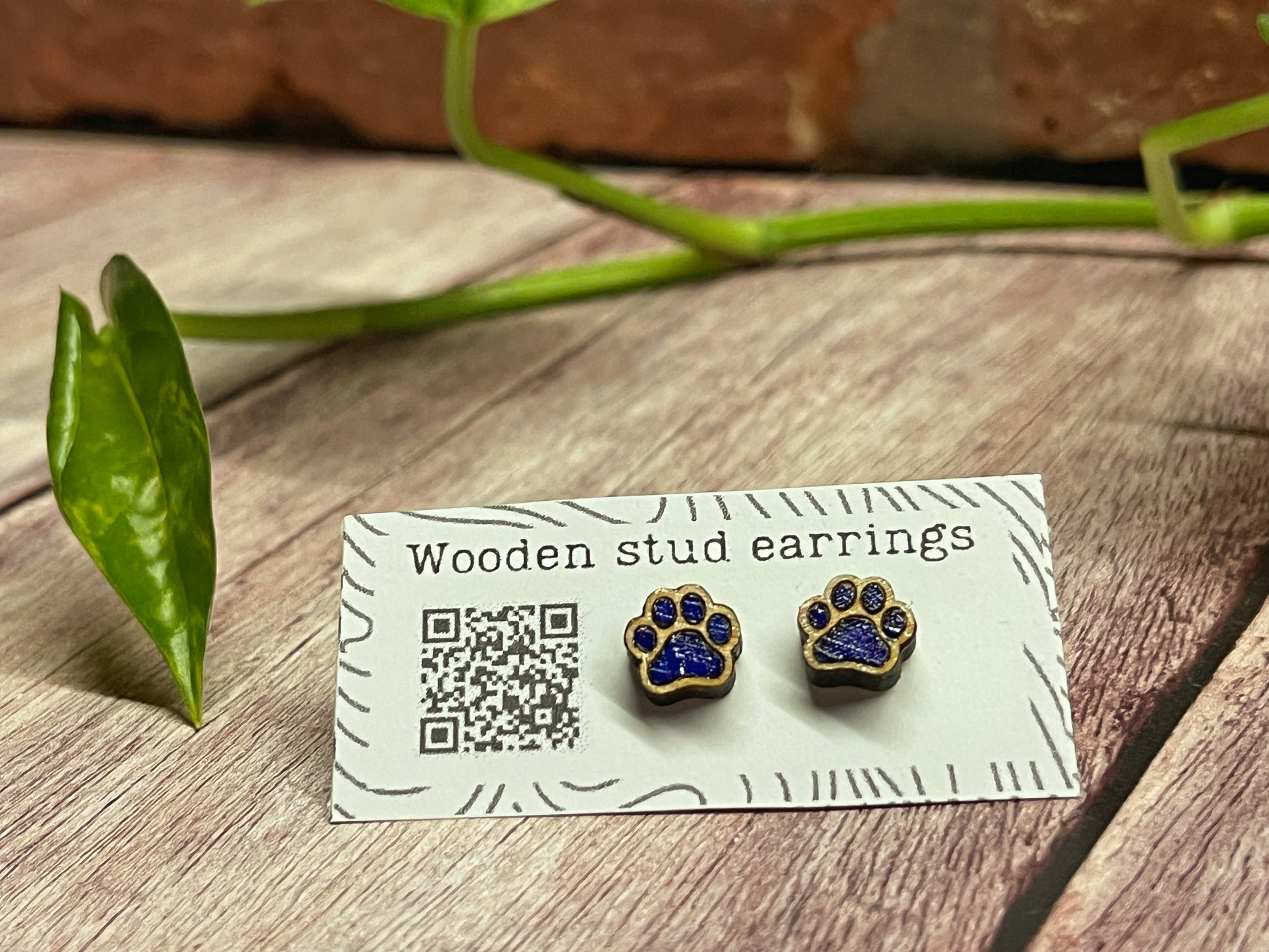 Celebrate your love for furry friends with these adorable tiny paw stud earrings in a rich brown hue. Made from 3mm birch plywood and laser-cut for precision, these earrings are lovingly hand-painted with acrylic paint and sealed for a durable, glossy finish. The stainless steel stud settings are hypoallergenic, ensuring comfortable wear for even the most sensitive ears.